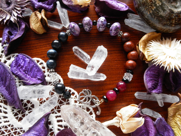 左側の黒玉2コはゴールデンオブシディアンで、わりと安い石なのですが、