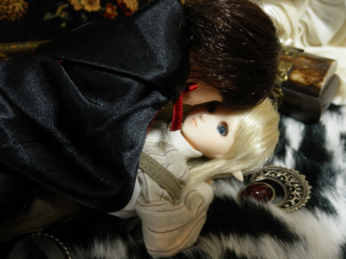 (黒マントを着せてからなんか吸血鬼っぽい、と思ったのでその演出をしてみました)