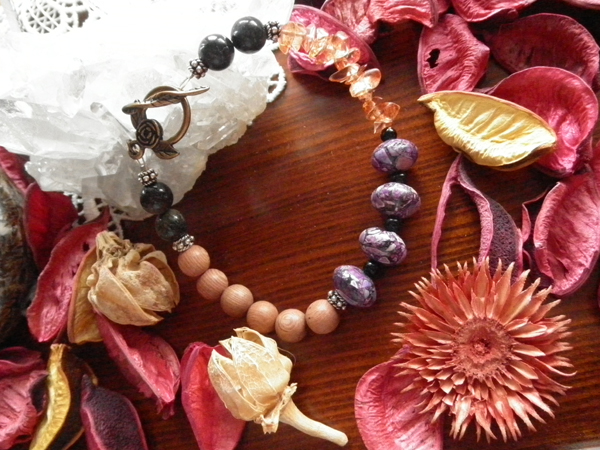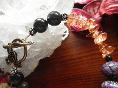 左側の黒玉2コはゴールデンオブシディアンで、わりと安い石なのですが、