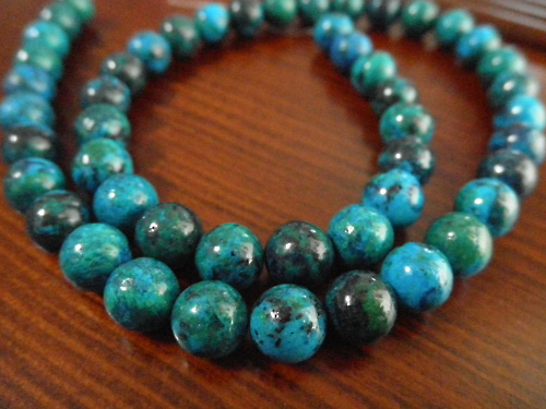 今回の買い物の中で、一番のお気に入りはクリソコラの8mm玉1連です。