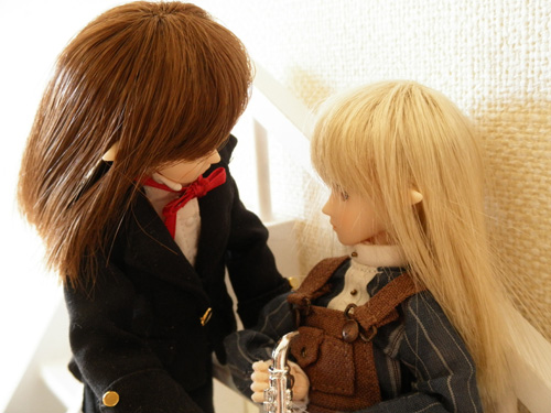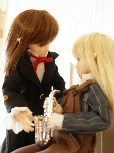 黒いのはテュオ君。フォーマルな恰好をしていて都会的です。