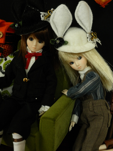 そちらで髪飾りとしてプチ帽子が売られていたので、白黒一つずつ購入。